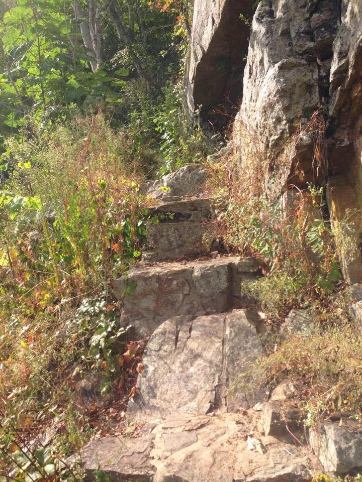 Leaving Snake Creek Gap, it was a steady climb up to the ridgeline where I briefly got cell phone signal and was able to get a group text message out to my pacers “Just left snake creek as. Feeling great” There was a bit of up and down from here before heading down to a couple of ponds and a gravel road with a parking lot which served as a trailhead for John’s Mountain. Here, the trail began to rise and get somewhat rocky. Then it rose some more and started with the switchbacks. There were some gorgeous views from the trail here as the side of the mountain was quite steep with little to no tree cover to block the view. The trail went up several rock staircases before finally summiting the staircase beside a wooden overlook built as a viewing platform over a waterfall. Climbing the last portion of stairs, a couple was coming down and they were visibly upset “don’t even bother …. there’s not even any water on the falls” I’m pretty sure she assumed that is why I was climbing this steep trail. I didn’t bother telling her that I hadn’t even planned on stopping off at the platform to look. From here, it was a short flattish section before the trail began to climb yet again. It was here that the leader of the 50 mile race began flying down the trail towards me. She told me that the aid station was just ahead and then she disappeared down the trail. After very little additional climbing, I arrived at the John’s Mountain Aid Station and the highest point of the race.