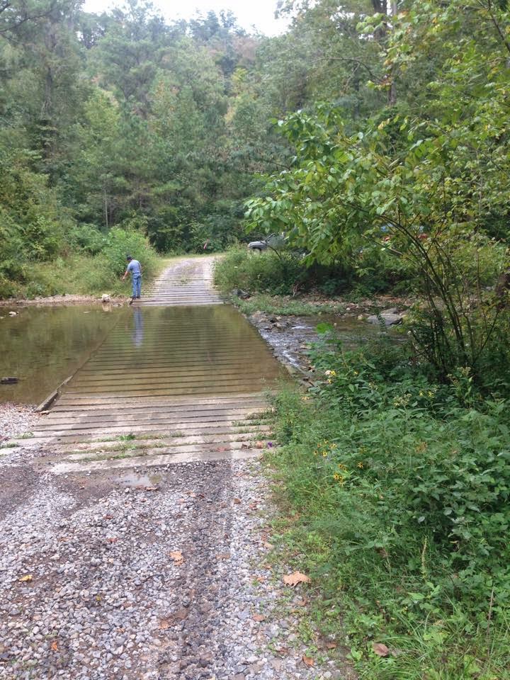 After leaving the John’s Mountain Aid Station, the trail followed a gravel road quite steeply down the far side of the mountain. I saw a few of the 50 milers but not as many as I expected to see before the course finally followed a trail off to the left. Almost immediately after reaching this trail, my GPS showed that I had hit my first marathon point …. 26.2 miles. I was 1/4 of the way there. I began seeing a few more of the 50 milers now. The trail at this point was narrow and somewhat rolling before it finally turned almost into an overgrown road. I had been passing 50 milers pretty steadily now and was eagerly waiting to see my friends who were running that distance. Finally, I rounded a corner and saw not one, but both Mary Deane and Elizabeth heading toward me. We greeted each other and wished each other good luck and went on our way. It was quite encouraging to see them though and my spirit was lifted a bit. From here, the course went down to the main road where we ran on pavement for a ways before turning onto a side street that after running a bit on the rolling hills, went down and disappeared into a creek. On the other side lay the Manning Road Aid Station and the absolute best hummus wraps I had ever eaten.