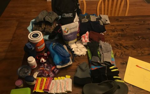 Gear: Salomon Skin 5 vest, Salomon buff (surprisingly this was the first time running with a buff, but I loved it), lightweight gloves, short-sleeve compression shirt, Eddie Bauer long-sleeve shirt, Tesla compression shorts, Baleaf 5” running shorts, Injinji socks, Altra Superior 3.5 shoes, Altra gators