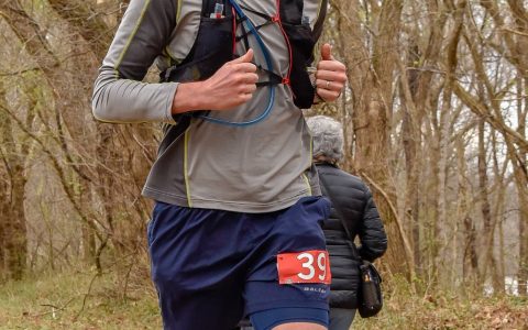 I read somewhere that the race starts at the towpath. The next 3.5 miles felt like they took forever. Finally, I hit the loop through Stone Mill, headed for the aid station, and prompted slipped in a big mud puddle….right before the course photographer. I hopped up, wiped myself off, and headed into the aid station to refill my tailwind. On my way back out on the trail, I took my first look at my pace and was pleasantly surprised to see that I was actually 5 minutes ahead of my stretch goal! Unfortunately, that didn’t last long as the next segment was 6+ miles of mud…often up to my ankles. By the time I rolled into the aid station at Route 28 West (mile 34.3), I had lost 30 minutes and had to let go of my sub-9:00:00 stretch goal. I was definitely disappointed, but turned my sights to completing my other two goals and to keep things interesting, I created a new goal.