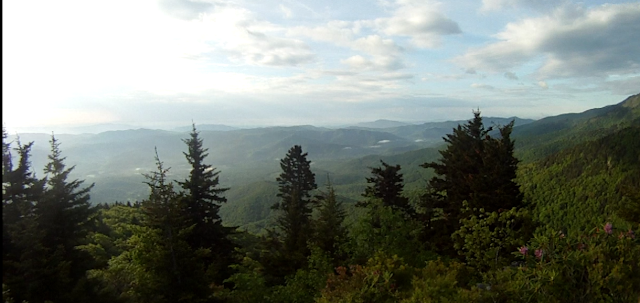 3 1/2 miles into the 3000 foot climb we came again to the water stop we had passed earlier. Here we refilled water bottles before heading on up the mountain. Here is where I also learned of another Luna wearer on the course from the comment, “You are the second person to come through here wearing flip flops” LOL And so we trudged onward and upward. All of the welcome downhill running from earlier was now an uphill battle. It was soul crushing in its never-endingness. At this point, I was running with a fellow Atlanta area runner, Zac. It was refreshing to connect with someone else on the motivations of signing up for this race. We finally made it to the grassy ridgeline and the amazing views. We negotiated the grassy singletrack as carefully as we could and when it finally leveled out a bit, I made an attempt to run. It was slow going but I felt like I was able to make up a little bit of time from the slow uphill trudge. The weather on the ridge was simply phenomenal.